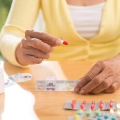 Relaxdays Tablettenbox 7 Tage, Täglich, Inkl. Tablettenschneider