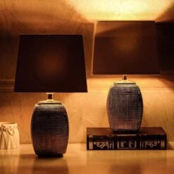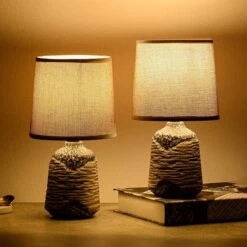 Schreibtischlampe BRUBAKER Grau, Mit Keramik-Standfuß, 2 Stück