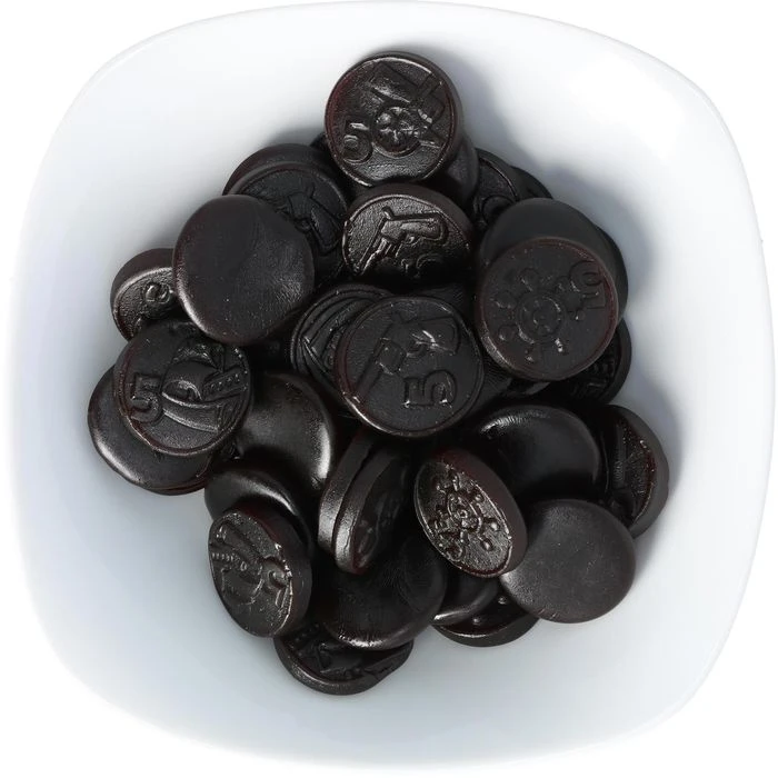Zutaten: Zucker, Glukosesirup, Stärke, brauner Zuckersirup, Aroma, Süßholzextrakt (3%), Kochsalz, Überzugsmittel: Bienenwachs weiß und gelb, Carnaubawachs.