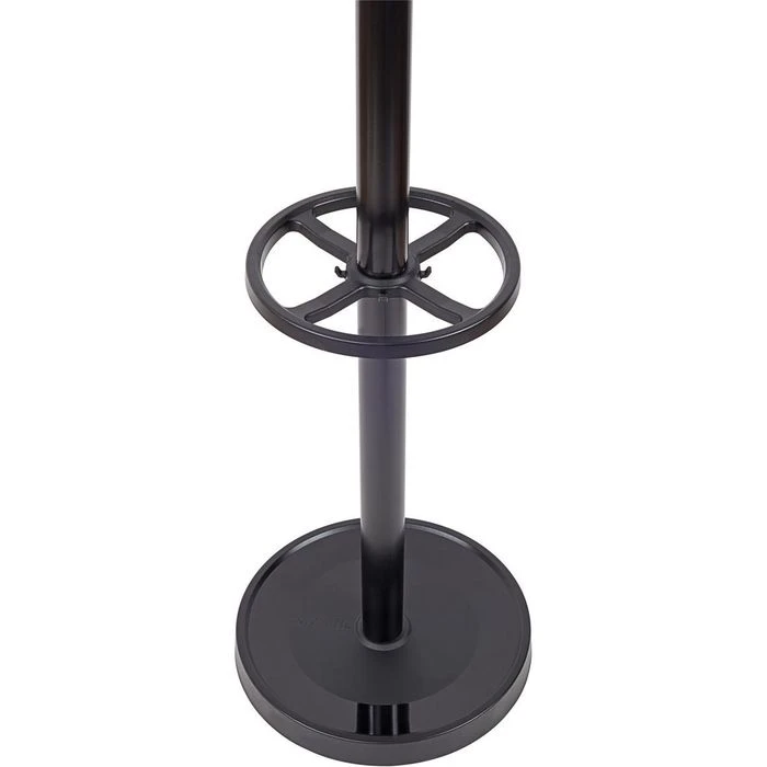 sonstiges: drehbare Hakenkrone mit 8 Hut- und Mantelhaken mit abgerundeten Kunststoff-Endstücken, je 4 zusätzliche Haken aus Kunststoff an der Säule und am Schirmständer, Schirmständer mit kratzhemmender, matt erodierter Fläche am Fuß, standsicher und stabil, schwerer Standfuß mit Betonfüllung und Kunststoff-Abdeckung, Fuß mit bodenschonenden Filzgleitern