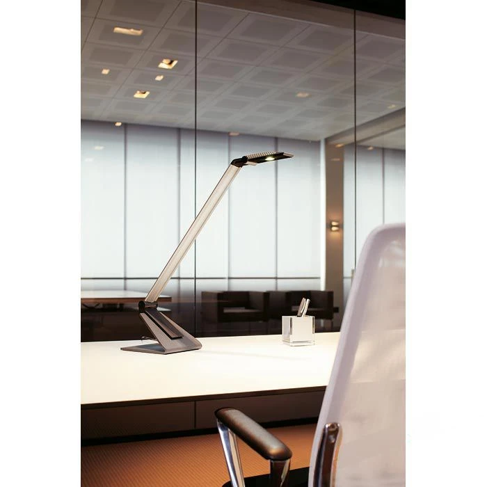sonstiges: Leuchtenkopf und Gelenkarm aus eloxiertem Aluminium mit Gelenken aus bruchsicherem Kunststoff, stabiler pulverbeschichteter Metallfuß, Leuchtenkopf um 150° drehbar und um 55° neigbar, Kabellänge 1,9 m, Netzteil im Leuchtenfuß integriert, Design Made by Reutershahn