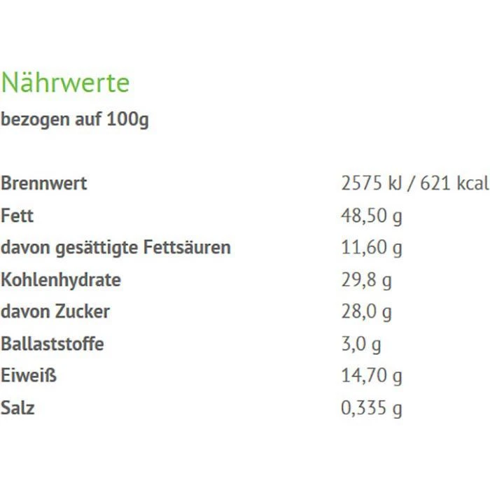 Zutaten: MAGERMILCHPULVER (24,00%), MANDELN (22,00%), Sonnenblumenöl, Palmöl, Rohrzucker, Bourbon Vanille, Tonkabohne.