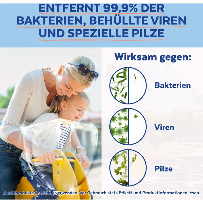 Wirksamkeit: bekämpft 99,9% der Bakterien, Pilze und spezielle Viren