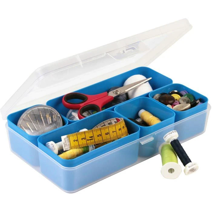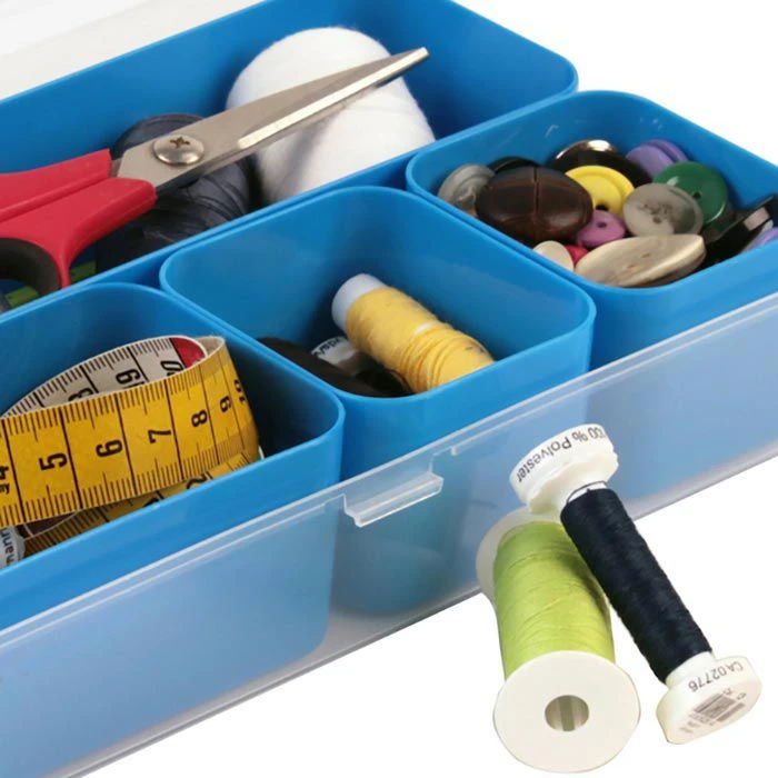 sonstiges: herausnehmbare Einsätze (3x 0,15L, 1x 0,35L, 1x 0,65L) für Spulen, Nadeln, Knöpfen & Co
