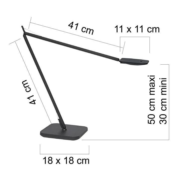 sonstiges: dimmbar mit Speicherung der letzten Intensität, flexibles Doppelarmgelenk, Leuchtenarm aus Aluminium, Leuchtenkopf auf Kunststoff mit Touch-Schalter, automatische Abschaltung nach 5 Stunden